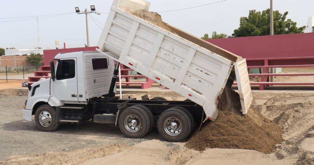 Además de afinar detalles en diferentes puntos de la zona, el equipo de la coordinación de Infraestructura Deportiva del Imdem comenzó la colocación, acomodo y nivelación de más 400 metros cúbicos de arena.