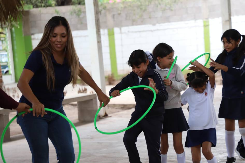 Posteriormente, la activación continuó en la primaria Ricardo Flores Magón, también en Villa Juárez, donde participaron estudiantes de primero a sexto grado. Durante la jornada, los menores realizaron diversas dinámicas deportivas y recreativas.