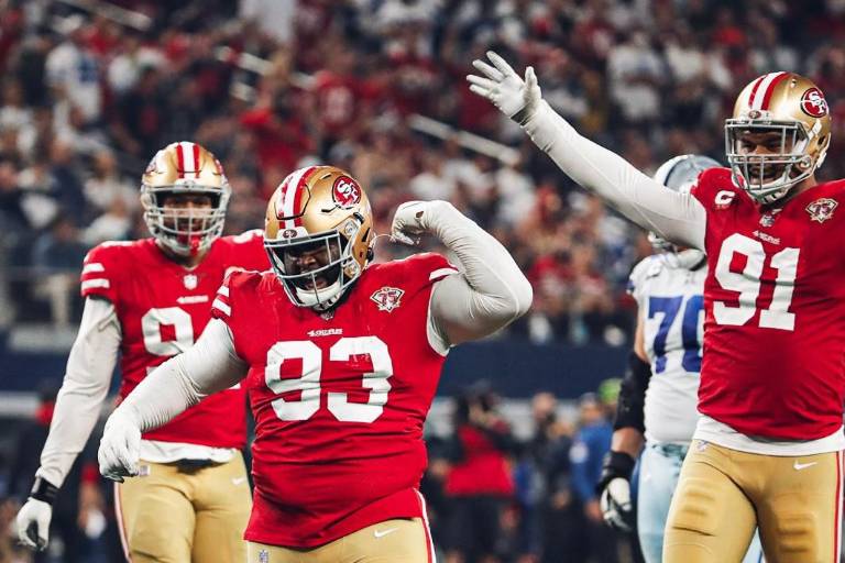 Los 49ers se sobrepusieron a una intercepción a Jimmy Garoppolo cuando tenían ventaja de 13 puntos en el último cuarto. Prescott corrió para un touchdown que acortó la diferencia, y le dio la oportunidad a Dallas de dar la voltereta con otra serie anotadora. Pero San Francisco logró detenerlos gracias a un pase desesperado de Prescott, que no encontró las manos de Cedrick Wilson.
