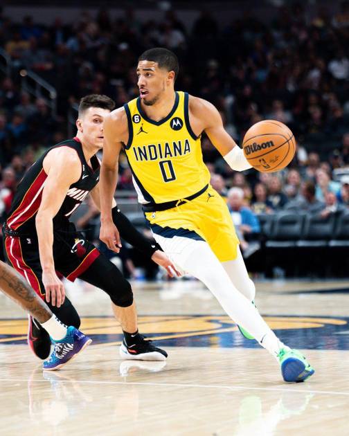 INDIANÁPOLIS._ Buddy Hield anotó 25 puntos, Bennedict Mathurin tuvo 23 y Tyrese Haliburton anotó 22 para llevar a los Indiana Pacers a una victoria 101-99 sobre el Miami Heat el viernes por la noche.