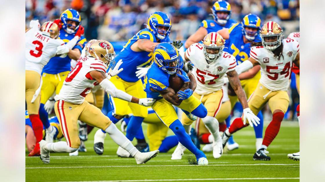 Después de recuperarse de un déficit de 10 puntos para empatar, los Rams fueron impulsados al Super Bowl tras de un gol de campo de 30 yardas ganador del juego de Matt Gay con menos de dos minutos restantes y una intercepción posterior de Travin Howard a Jimmy Garoppolo.
