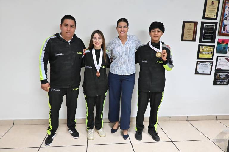 Los taekwondoínes visitaron a la directora del Instituto Municipal del Deporte Mazatlán, Fabiola Judith Verde Rosas, acompañados por su entrenador, Juan Manuel Ortega Teutle, para hablar sobre su experiencia en la justa atlética amateur más importante del país, celebrada Guadalajara, además de agradecer el apoyo recibido para su preparación y fogueo.