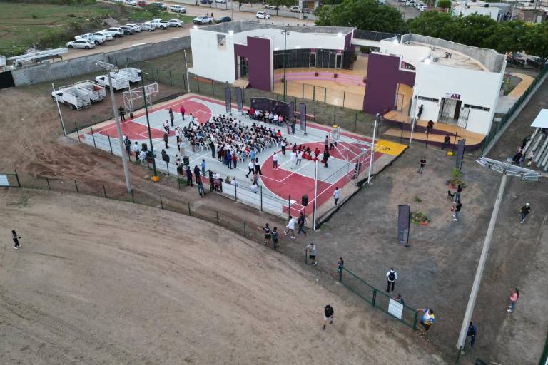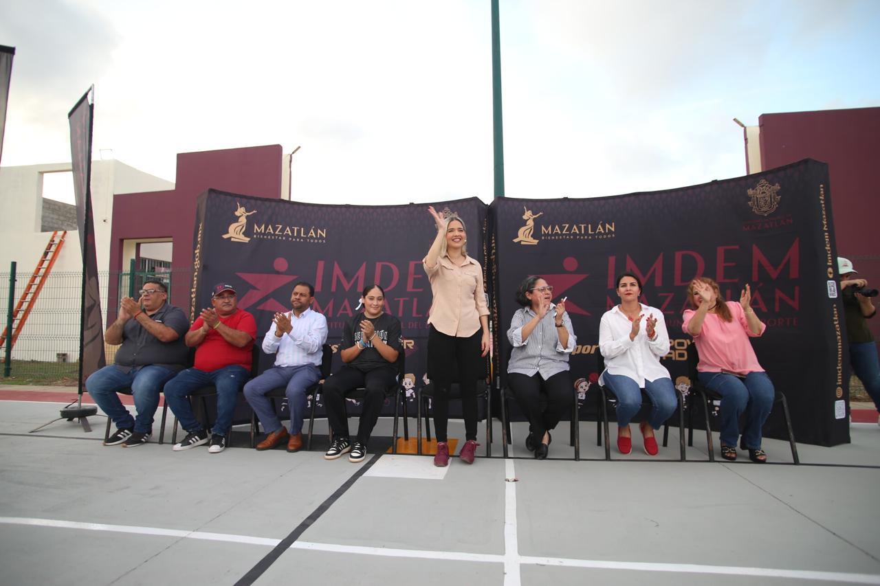 La obra beneficiará a más de mil 500 niños y jóvenes del norte del municipio en las disciplinas de baloncesto, beisbol 5, futbol, softbol y voleibol, por lo que Palacios Domínguez destacó el trabajo en equipo del Imdem, Obras Públicas, Parques y Jardines y el Sistema DIF Mazatlán.