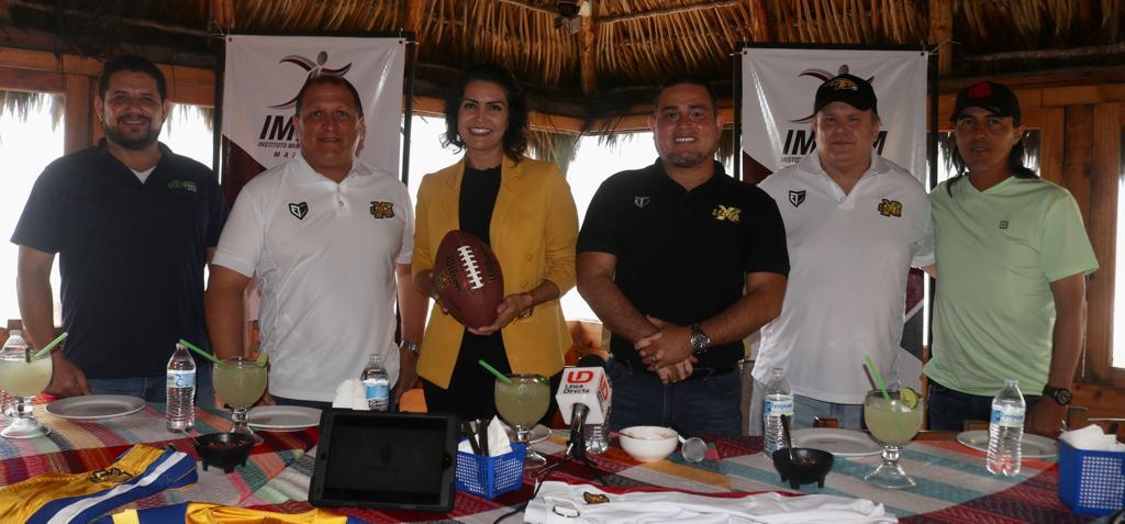 Durante la rueda de prensa a la que asistió como invitada especial la directora del Instituto Municipal del Deporte, Fabiola Judith Verde Rosas, se presentaron los uniformes de las selecciones sinaloenses, femenil y varonil, así como los coaches Sergio Tirado (ofensivo), Carlos Anguiano (femenil), Edward Ritter, que saldrán en defensa del campo Villas del Rey, en la modalidad arena.