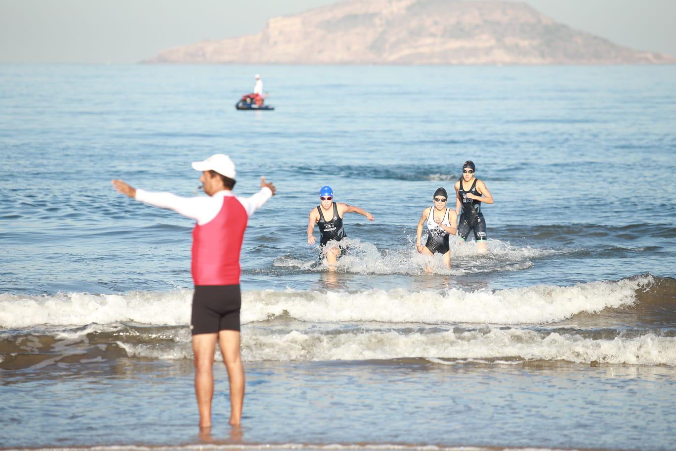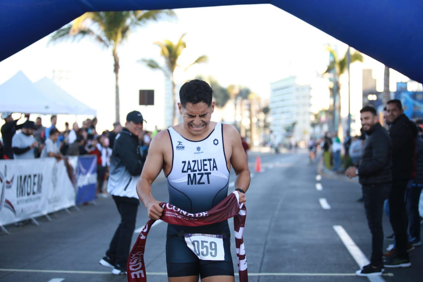 Su cara lo decía todo. Le dolía, pero él quería ganar y así fue. “El Perrón” Zazueta fue el primero en salir del mar tras nadar 400 metros, y pese a tener muy de cerca a Diego Alatorre, no le bajó a la intensidad.