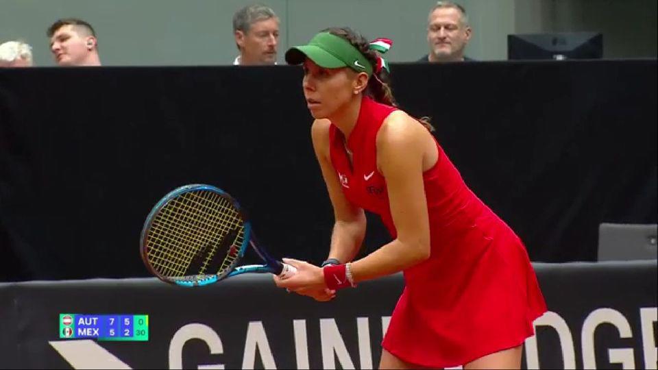 En el primer juego del día, Fernanda Contreras sacó el primer punto para México al vencer en una hora 54 minutos, a la austriaca Tamira Paszek, por 6-2, 7-5.