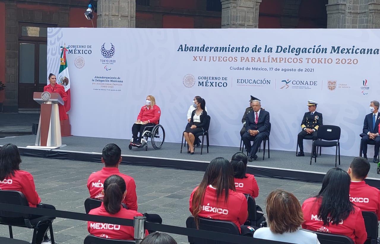 MÉXICO._ La paratleta mazatleca Rosa María Guerrero fue la encargada de dar el mensaje de la delegación mexicana durante la ceremonia de abanderamiento de los atletas que competirán en los Juegos Paralímpicos Tokio 2020.