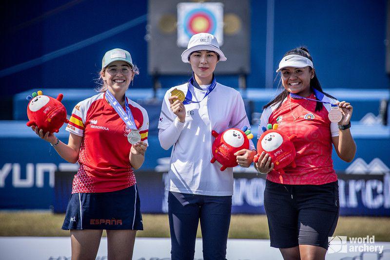 La arquera mexicana, ganadora de dos oros en los pasados Juegos Panamericanos Junior Cali-Valle 2021, se enfrentó en semifinales con la tiradora local Yunhee Kim, quien venció en la tirada por 141-137 y se clasificó para la final con la española Andrea Muñoz.