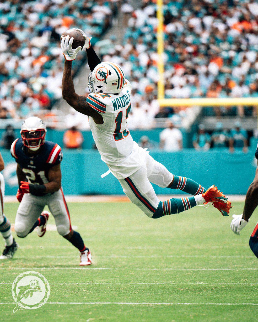 Los receptores abiertos Tyreek Hill (112) y Jaylen Waddle (121) anotaron cada uno un touchdown y superaron las 100 yardas en recepción, mientras que el esquinero Jalen Ramsey agregó una intercepción en su debut con los Dolphins.
