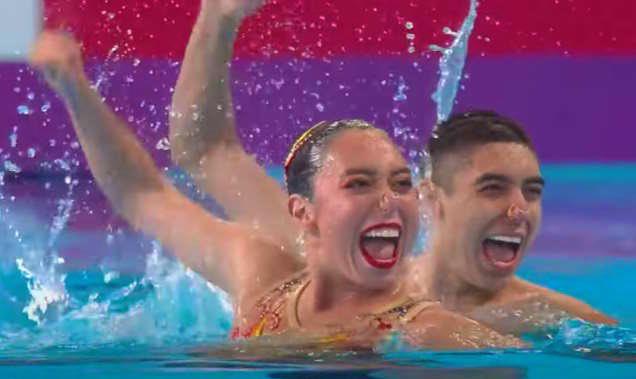 Barrera y Villalobos sumaron 217.5192 puntos para subir al tercer escalón del podio de la natación artística.