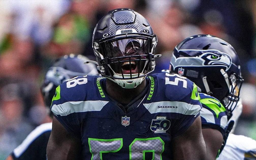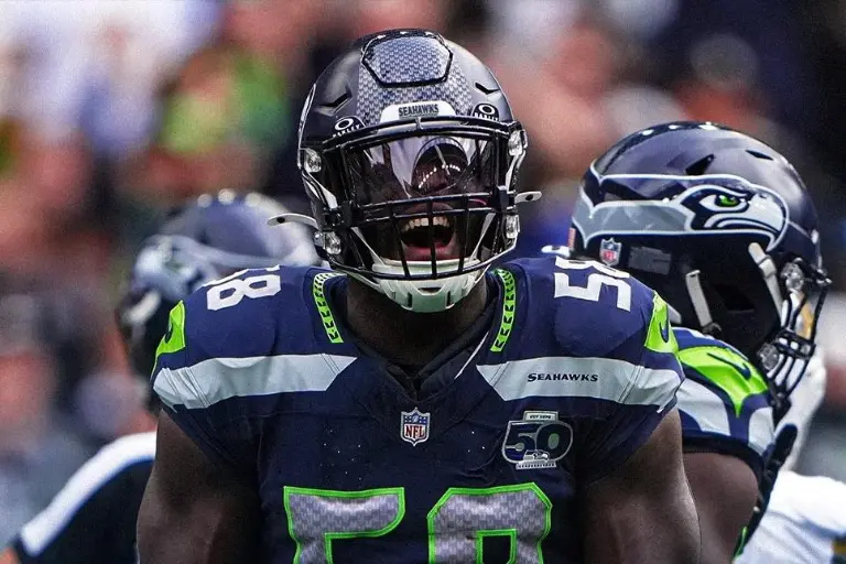 El jugador, seleccionado en la segunda ronda del draft de 2023, forma parte de la rotación de cuatro linebackers externos de Seattle y promedia unas 30 jugadas por partido. Este año acumula una captura y 10 golpes al mariscal de campo en 13 encuentros, tras haber registrado ocho capturas en 2024.