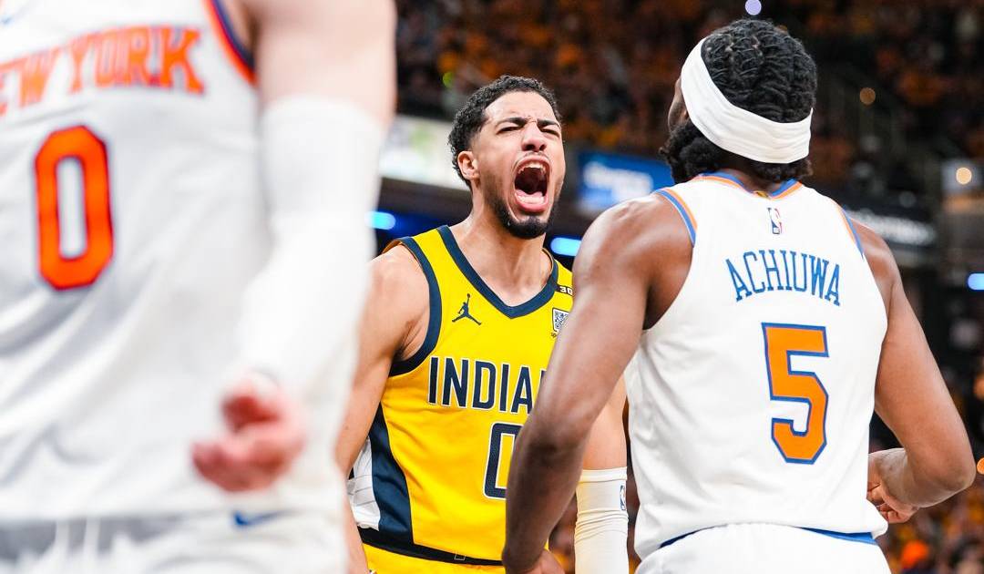 El triple de Andrew Nembhard desde 30 pies con 16.4 segundos restantes dio a los Indiana Pacers la ventaja en una eventual victoria por 111-106 sobre los New York Knicks, en el tercer juego de su serie de playoffs de segunda ronda en la NBA.
