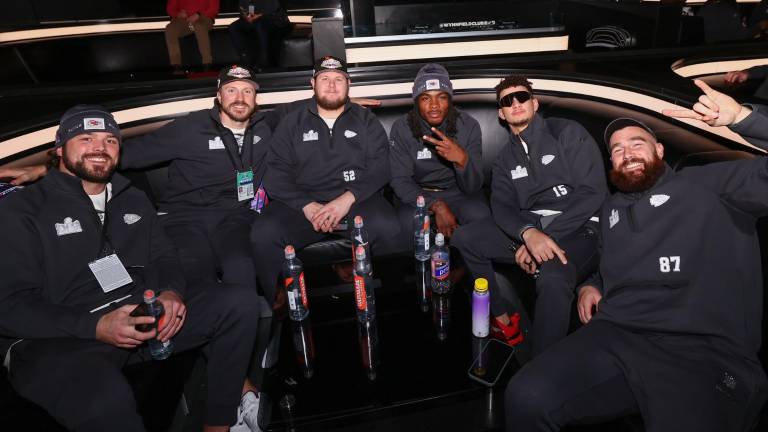 Mahomes asistió acompañado de su esposa Brittany y sus dos hijos, Sterling Skye, de tres años, y Patrick ‘Bronze’ Lavone, de un año. La familia del mariscal de campo disfrutó del parque de diversiones, mientras el celebraba su título.