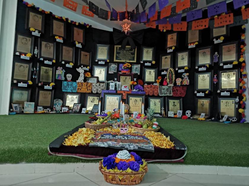 Personal del Salón de la Fama dio vida a la famosa catrina, quien enalteció el Día de Muertos que se lleva a cabo el 1 de noviembre, dedicado a todos los santos, en especial a los “angelitos”, y el 2 de noviembre a los adultos difuntos, pero que en esta ocasión se hizo el altar de muertos como reconocimiento a los inmortales de Culiacán que se adelantaron en el camino sin retorno.