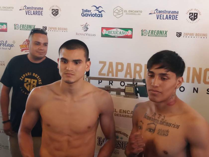 El estelar de este viernes, el escuinapense Alan “Soldado” Contreras, pesó 64 kilos y su contrincante César Lara (Torreón) tuvo 63 kilos, 500 gramos. La pelea será en Superligero a 6 asaltos.