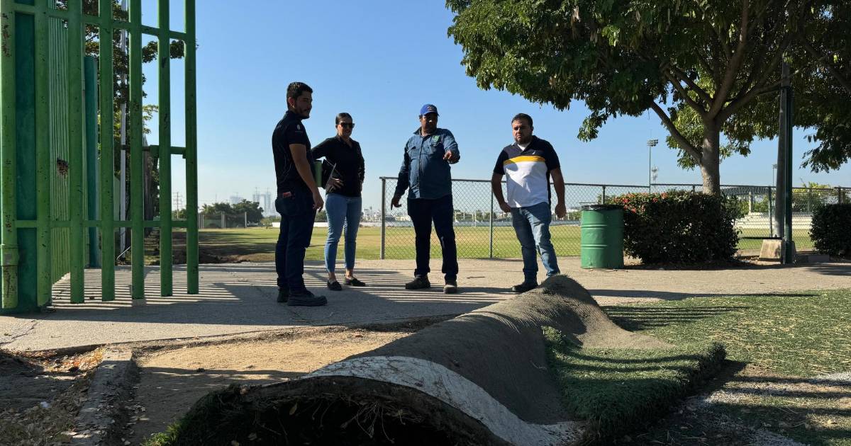 La titular del Imdem también visitó la Unidad Deportiva Benito Juárez, donde avanzan los trabajos del nuevo alumbrado del campo de futbol de pasto sintético, así como el campo de beisbol JJ Pacho, de la colonia Libertad de Expresión, para realizar una evaluación de las necesidades del espacio deportivo en el que conviven una escuelas de atletismo, la liga de futbeis y la liga de beisbol municipal.