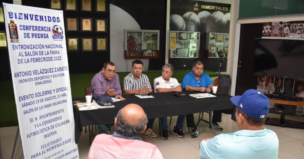 CULIACÁN._ El cronista y escritor deportivo, Antonio Velázquez Zárate, será reconocido por un grupo de futbolistas, el Ayuntamiento de Culiacán y la Asociación de Cronistas Deportivos del Estado de Sinaloa.