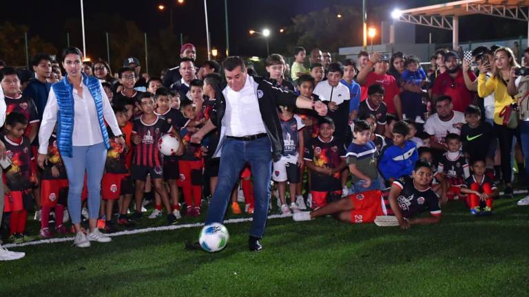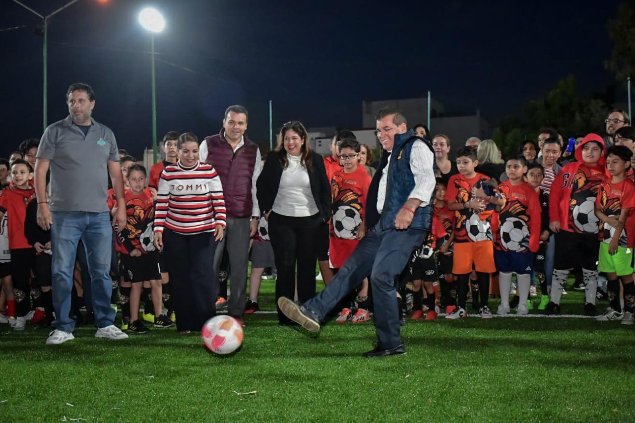“Quiero decirle a los papás que vamos a seguir invirtiendo en el deporte, en las canchas, donde se benefician miles de deportistas, niños, jóvenes y personas adultas”, dijo el Presidente Municipal, Édgar González, durante el acto de entrega de la obra.