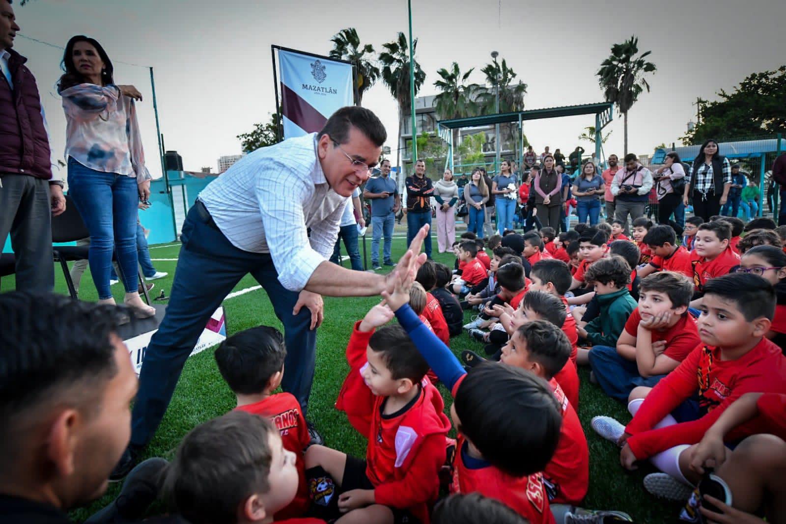 En compañía de la directora del Instituto Municipal del Deporte, Fabiola Judith Verde Rosas, regidores y funcionarios municipales, el Alcalde entregó la rehabilitación de la Unidad Deportiva Sábalo Country que contó con una inversión superior a los 600 mil pesos.