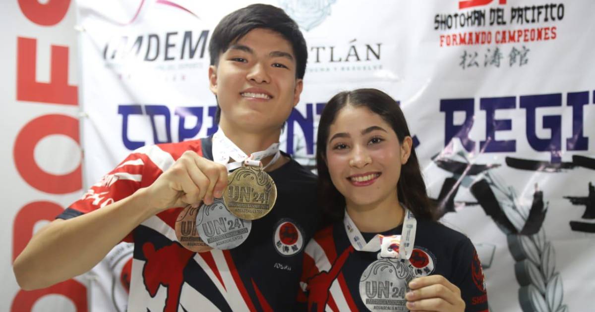MAZATLÁN._ Recién desempacados de la Universiada Nacional 2024, donde lograron subir al podio, los karatecas mazatlecos Idalia Karime Nieto Flores e Hiroto Javier Yoshii Mizukami mostraron su beneplácito por la realización de la edición 25 de la Copa Anual Regional de Karate Noroeste.