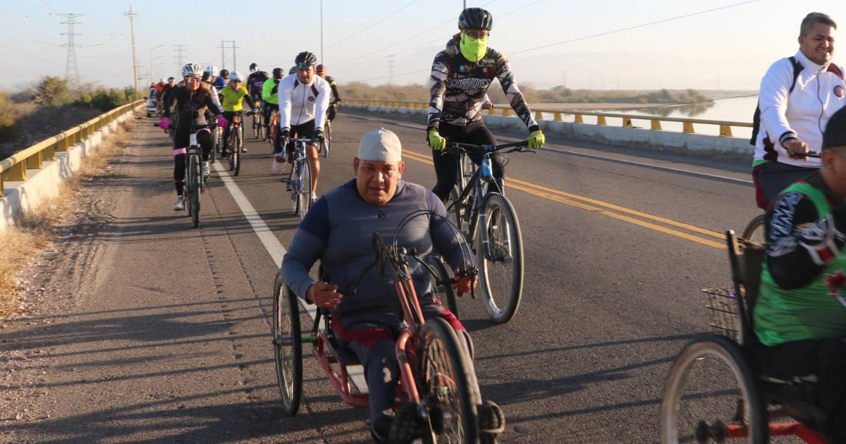 El recorrido llevó a los deportistas a disfrutar de los paisajes matutinos del valle hasta llegar a Playa Las Cabras, combinando actividad física con un gesto de generosidad hacia los abuelitos de Escuinapa.