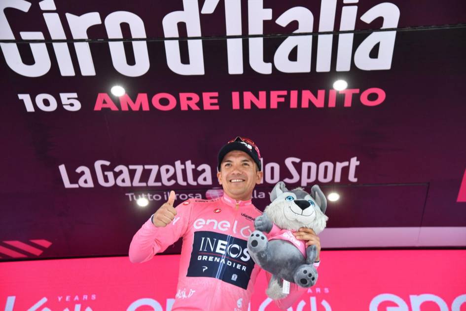 APRICA, Italia._ Richard Carapaz completó una positiva etapa 16 de montaña del Giro de Italia, que este martes unió las ciudades de Saló y Aprica en 202 kilómetros, para mantenerse en lo más alto de la clasificación general.