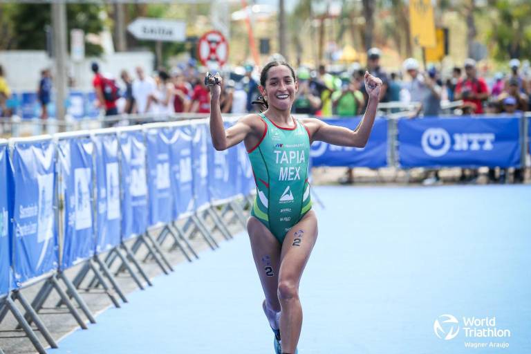 BRASILIA._ La triatleta mexicana Rosa María Tapia se colgó la medalla de bronce en la Copa del Mundo de Brasilia 2023.