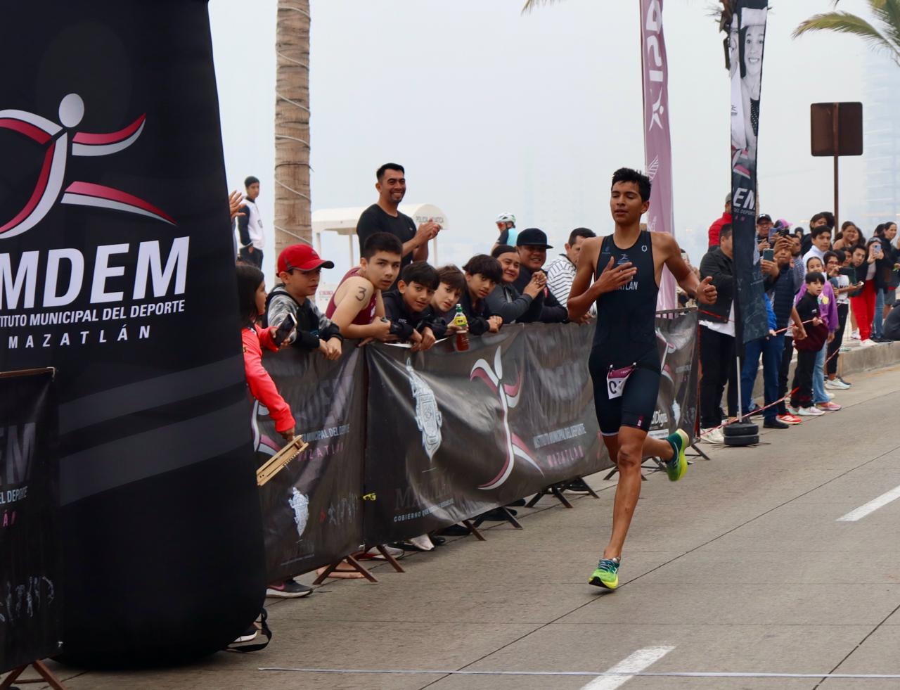 MAZATLÁN._ Con una actuación dorada encabezada por José Luis Zazueta y Daira Mercado, complementada por el 1-2-3 de Lilia Alardín, Danna Cordero y Regina Osuna, en la categoría 13-15 Años, Mazatlán levantó la mano en triatlón, en la etapa estatal de los Juegos Nacionales Conade.