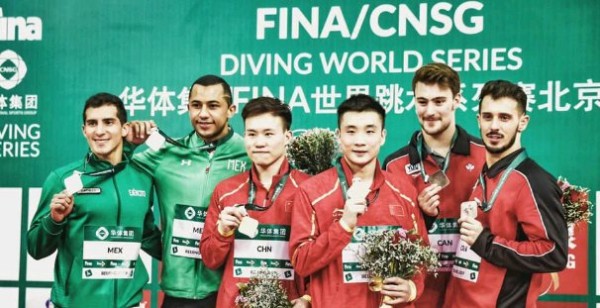 BEIJING._ Los mexicanos Jahir Ocampo y Rommel Pacheco, en los tres metros sincronizados, conquistaron su segunda medalla de plata en la Serie Mundial de Clavados FINA 2019, ahora en el emblemático Cubo de Agua de Beijing, China.