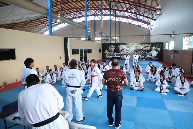 “Estamos terminando el primer seminario de clasificación y reclasificación de arbitraje 2026 y actualización en el nuevo reglamento de World Taekwondo, con la participación de 80 integrantes entre atletas, entrenadores y árbitros, quienes lograron clasificarse a nivel estatal, regional y nacional por la Federación Mexicana del Deporte Escolar”, señaló Carlos Báez Millán, presidente de la Asociación de Taekwondo de Sinaloa.