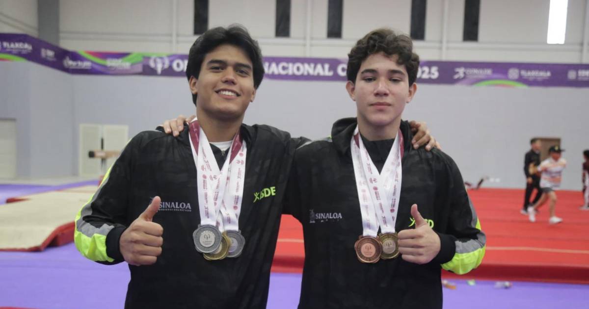 APIZACO._ Con actuaciones sobresalientes, los gimnastas sinaloenses Aarón Ibarra Osuna y Gael Rosales Valdez dejaron huella en la Olimpiada Nacional Conade 2025, al conquistar tres medallas de oro en la disciplina de gimnasia artística varonil, celebrada en el Pabellón A de la Ciudad Deportiva de Apizaco, Tlaxcala.