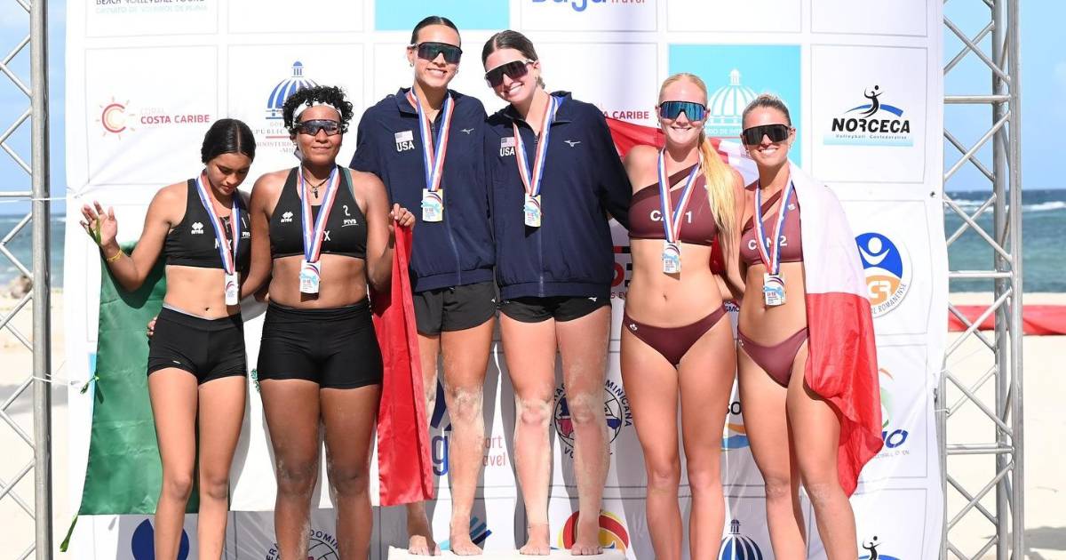 JUAN DOLIO._ Ángela Pérez Araujo continúa escribiendo su nombre en la historia del voleibol al conquistar la medalla de plata en el Torneo Clasificatorio Norceca Sub 18 de voleibol de playa, rumbo al Campeonato Mundial FIVB, junto a la veracruzana Melina Román.