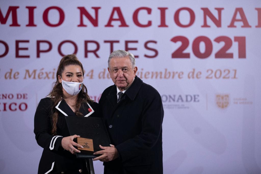 MÉXICO._ Los deportistas sinaloenses María del Rosario Espinoza y Julio César Urías recibieron este miércoles el Premio Nacional de Deportes 2021.