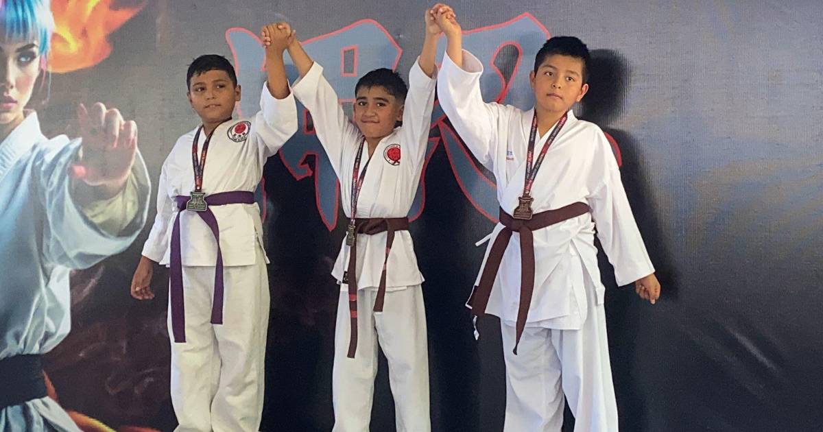 Alan Aguiar Gómez fue de los más destacados al obtener doble presea áurea, la primera en kata y kumite de cintas cafés 8-9 Años; mientras que su hermana, Alany, se quedó con el oro en la kata y la plata en el kumite de la división 11-12 Años, para cintas negras.