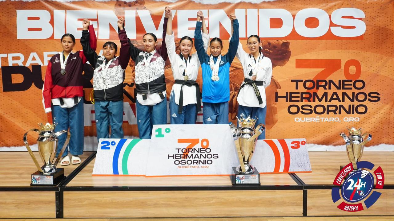 MAZATLÁN._ Con una destacada participación individual y por conjunto, los taekowndoínes de la Selección de Mazatlán cosecharon una medalla de oro, cinco de plata y una de bronce, en el Séptimo Torneo de los Hermanos Osornio, realizado en la ciudad de Querétaro.