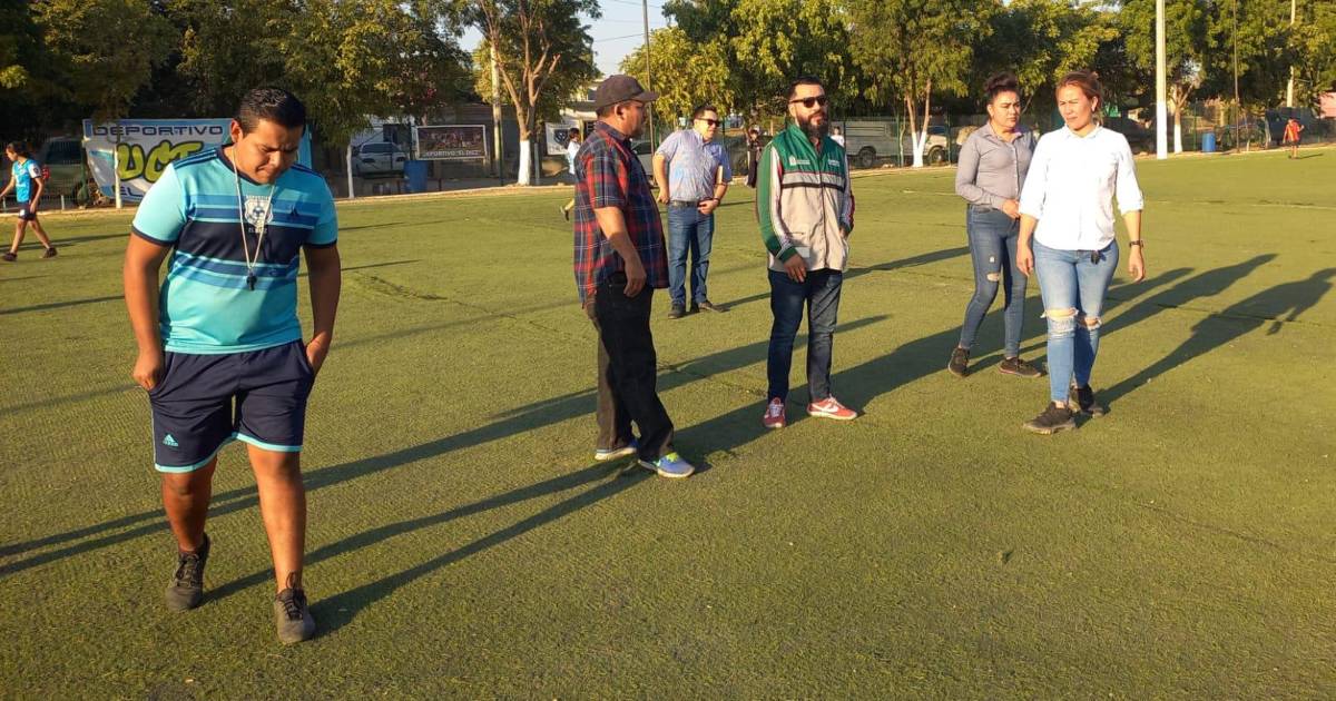 El director general del Imdec, José Alberto Beltrán Figueroa, en compañía de la regidora Arely Ruiz, hicieron el recorrido en canchas de los ejidos El Diez, El Quemadito y Bachigualatito.