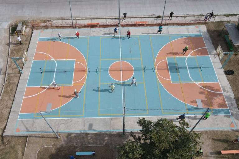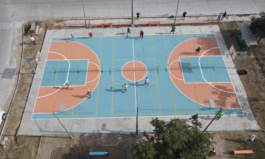 Como parte del mejoramiento del espacio, el equipo de herreros del Imdem realiza un cerco perimetral para colocarlo en la cancha de pickleball, además dar los últimos detalles a las porterías y alrededores de la unidad, con el objetivo de que los residentes realicen de la mejor manera sus actividades deportivas.
