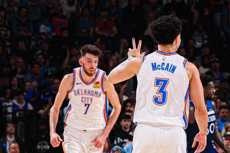 La tarde tuvo varios protagonistas. Chet Holmgren brilló con 21 puntos y nueve rebotes, mientras que Isaiah Joe salió del banquillo para firmar 20 puntos en apenas 21 minutos, con cuatro triples y una efectividad que encendió al público. Jared McCain también aportó con 15 unidades y cinco triples.