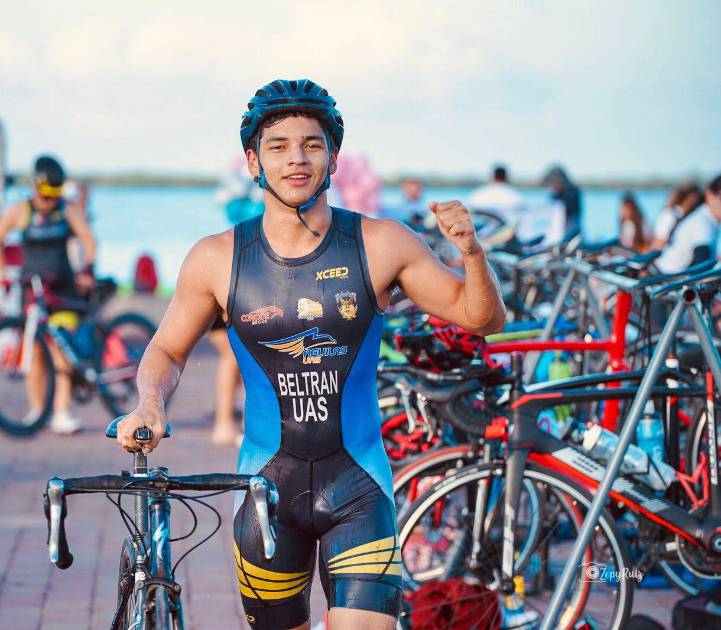Eduardo Beltrán García, estudiante de la Facultad de Medicina de la UAS, llegó el segundo lugar en la modalidad olímpica que son: 1,500 metros de nado, 40 kilómetros de ciclismo y 10 kilómetros de carrera.
