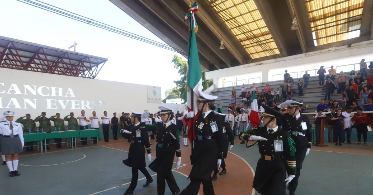 La coordinadora ejecutiva de la Zona 05, Yadira Osuna Rodríguez, indicó que las 14 escoltas participantes y las siete bandas de guerra ejecutaron los toques reglamentarios de silencio, reunión, llamada de tropa, introducción de diana moderna y paso acelerado, así como marchas libres militares.
