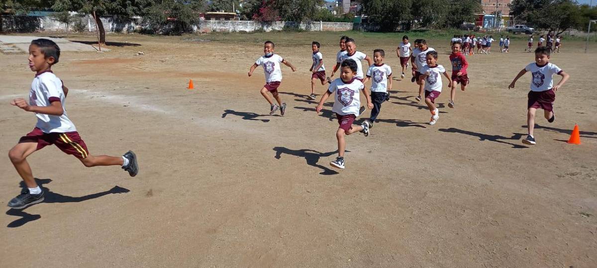 Mientras se desarrollaba la competencia, los maestros que también participaron en la actividad, alentaron a los pequeños atletas para que cruzaran la meta.