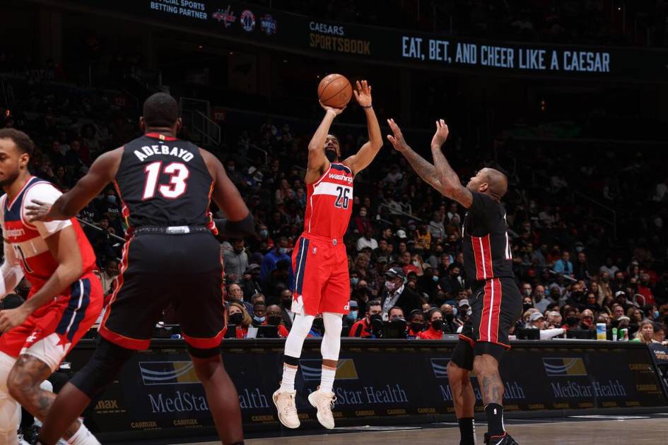 El Heat parecía encaminado a un triunfo ante los Wizards (venía de vencerlos el jueves), estando al frente en el marcador por 94-84 a falta de algo más de cuatro minutos en el último cuarto. Sin embargo, todo sería de Washington a partir de ahí, con una seguidilla espectacular de triples de parte de Kentavious Caldwell-Pope y Spencer Dinwiddie (anotaron dos cada uno) que los adelantó por tres en el último minuto.
