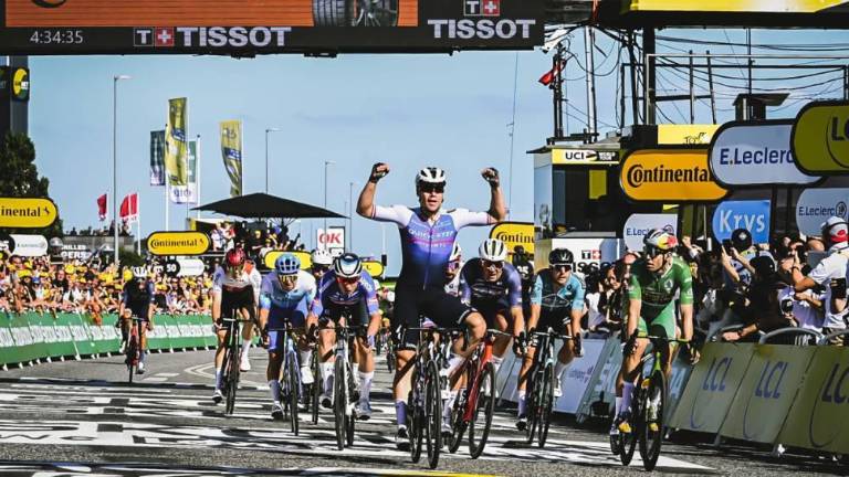 Van Aert llegó a la primera meta del Tour en Calais al vuelo, puños al aire. Como si hubiese ganado el Mundial. Sacó 8 segundos de adelanto sobre un pelotón encabezado por el belga Jasper Philipsen (Alpecin Fenix), quien se confundió creyendo que era él el vencedor y se vino arriba como tal, con la tercera plaza para otro hombre del Jumbo Visma, el francés Christophe Laporte.