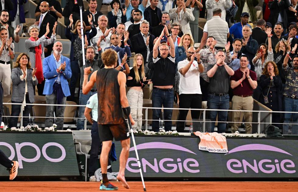 Entonces, al borde del desempate, se produjo un accidente fortuito: Zverev cayó al suelo tras doblarse su tobillo derecho. Entre llantos de dolor, el alemán abandonó la pista en una silla de ruedas camino de los vestuarios, donde evaluaron el alcance de lo sucedido. El jugador de Hamburgo regresó a la cancha en muletas para estrechar la mano del juez de silla y certificar su retirada del torneo.