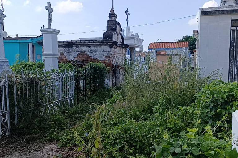 A unos días del Día de Muertos, el panteón municipal en Escuinapa se mantiene con maleza y basura