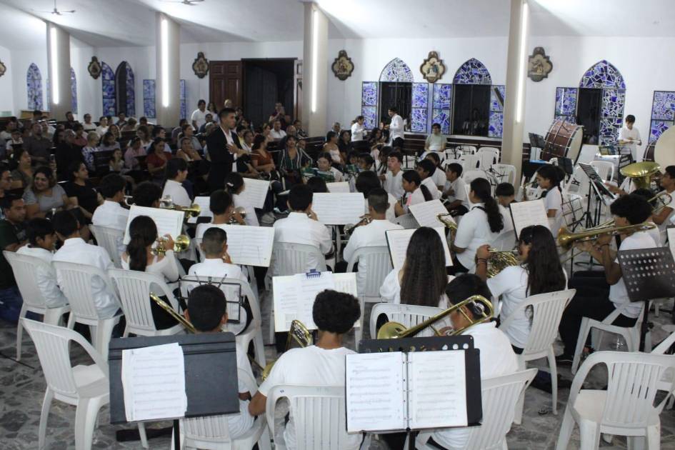 EL ROSARIO._ Las agrupaciones musicales del sur, Orquesta y Coro “Paseo del Centenario”; Orquesta y Coro Infantil y Juvenil de Rosario; Banda Sinfónica “Pescadores de Teacapán” y Banda Sinfónica de Escuinapa, unieron sus talentos para brindar una presentación.