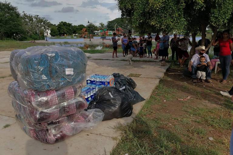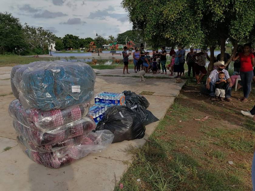 EL ROSARIO. _ Durante una entrega de apoyos en la comunidad de Francisco Villa, “Las Garzas”, en compañía de funcionarios estatales, el Alcalde Ricardo Núñez Ríos, precisó que como parte de los estragos generados por el huracán Nora, se vieron afectadas por inundación mil 500 familias.