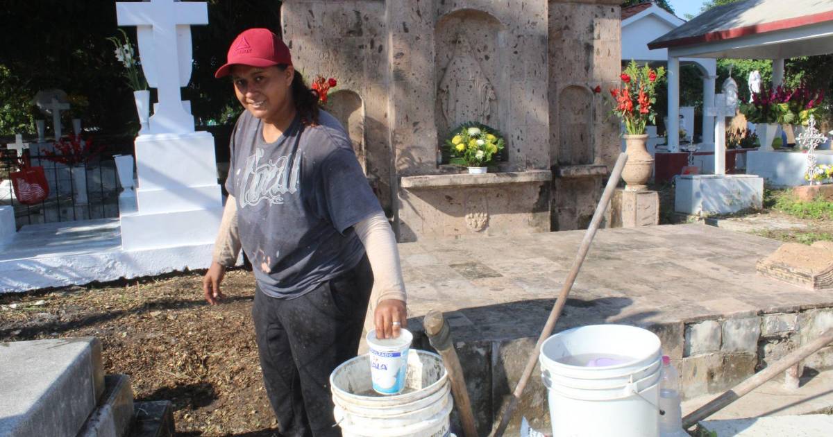 Ana Isabel, madre de familia que encuentra sustento en la limpieza de tumbas en El Rosario