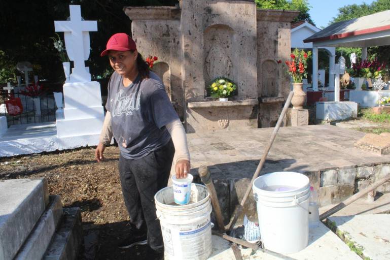 Ana Isabel mencionó que por atender una tumba por completo desde desmontar, limpiar y acarrear agua cobra alrededor de 300 a 400 pesos, pero al procurar hacer el mejor trabajo posible ha recibido incluso un poco más.