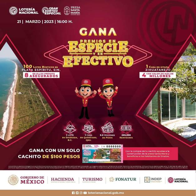 El anuncio hecho en redes sociales de la Lotería Nacional anuncia el sorteo especial para el 21 de marzo, donde el premio principal es una casa en Ixtapa Zihuatanejo con valor de más de 4 millones.